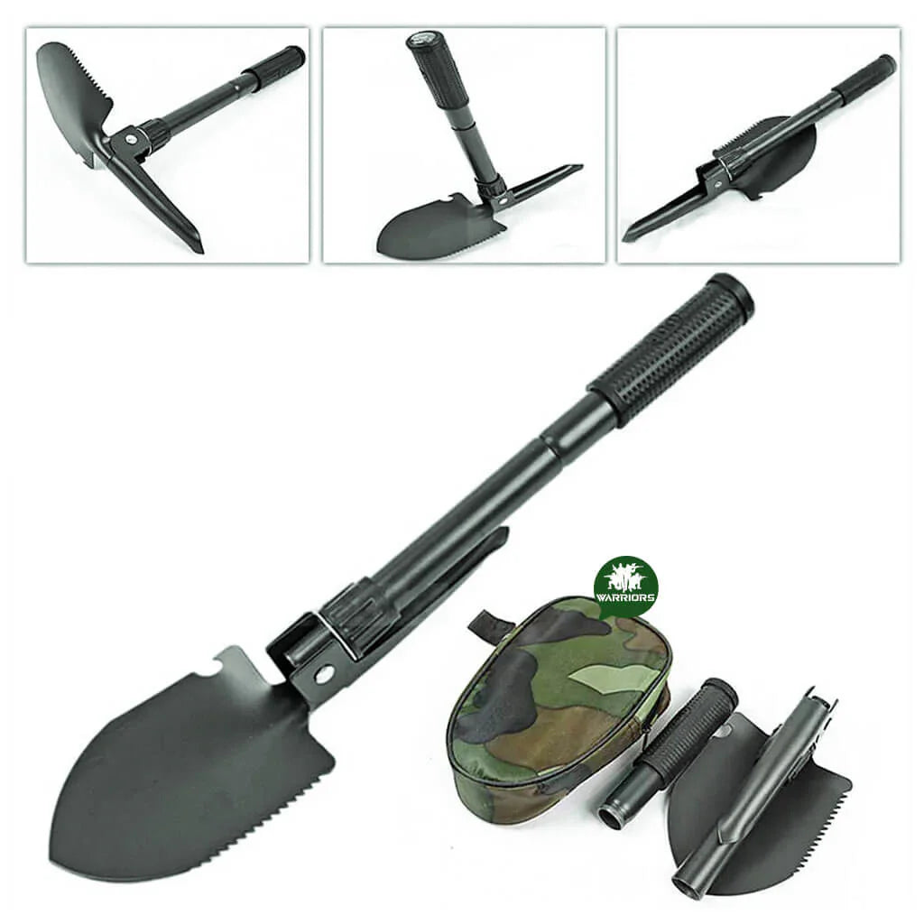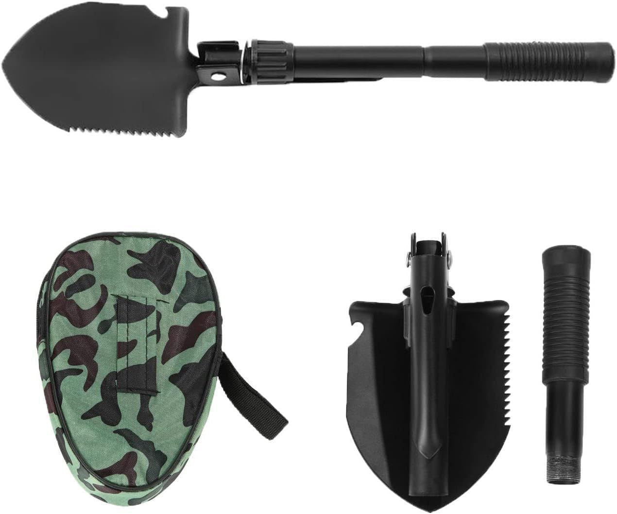 Pala multiherramienta con múltiples funciones - funciones todo en uno de la pala: cavar, zanjar, astillar, aserrar, abrir, proteger, colgar, levantar, cortar, escalar, martillar, extraer clavos, etc. Qué herramienta tan versátil para todo tipo de actividades al aire libre. amantes! Esta pala multiusos también se puede utilizar como pala táctica, es una pala plegable portátil militar con pala afilada, asas ajustables y una bolsa de transporte. Para uso diario, esta pala también se puede utilizar como pala de jardín, pala de nieve y pala de zanjas